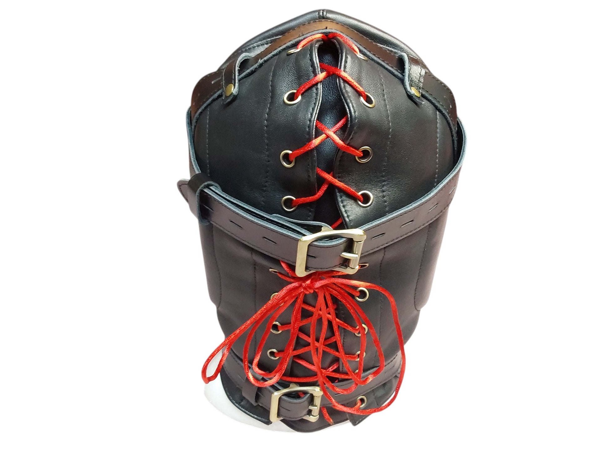Handmade Leather Sensory Isolation Hood — Black, Lined, Rear Lacing